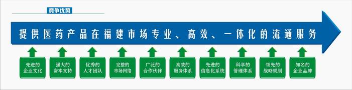 我们致力于提供多样化的增值服务,成为福建省最具增值能力的流通服务商。通过业务网络的协同、相关硬件的投入及ERP 在全省范围的联网,公司能为客户提供商业合作、物流配送、信息查询、药品推广、药事服务、方案咨询等多样化的服务。