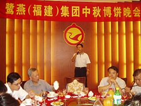 2007年9月21日,在一年一度的中秋佳节前夜,厦门白鹭宾馆宴会厅内一派喜气洋洋,鹭燕集团携旗下厦门鹭燕医药有限公司、厦门鹭燕大药房有限公司、厦门鹭燕医疗器械有限公司、厦门鹭燕制药有限公司的厦门地区300多名员工欢聚一堂,共庆中秋佳节。集团董事长兼总裁吴金祥先生发表了热情洋溢的贺辞,表达了对广大员工的诚挚谢意,并展望了公司良好的发展前景。席间,集团各公司的领导还亲自向各桌员工祝酒—感谢大家长期以来对鹭燕集团的发展壮大所做出的贡献。